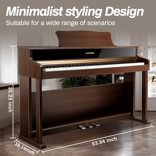 AODSK 88-Key Digital Piano, Heavy Hammered Keyboard, Upright Design, Brown Woodgrain Case, Comes with Headphones & Online Lessons