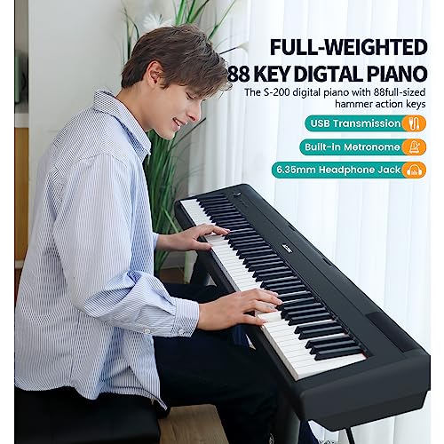 AODSK 88 Key Weighted Action Digital Piano,Grade Hammer Action Keyboard for Beginner Kids/Adults Beginner Digital Piano Black