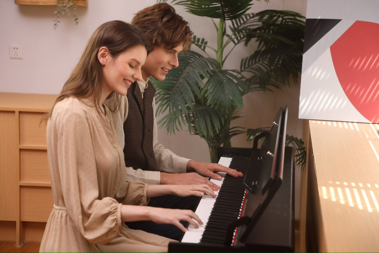 AODSK 88-Key Digital Piano, Heavy Hammered Keyboard, Upright Design, Brown Woodgrain Case, Comes with Headphones & Online Lessons