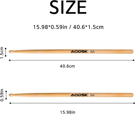 AODSK Drum Sticks 5A Classic America Maple Wood Tear Drop Tip Drumsticks Anti-Slip,Suitable for adults and children with storage Bags-6 Pairs