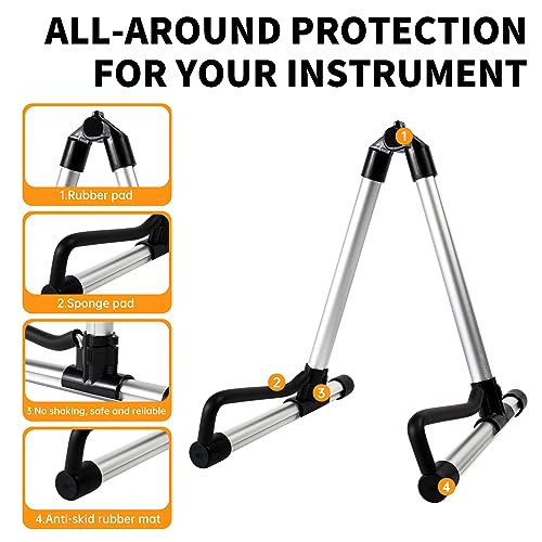 AODSK AS-401S Guitar Stand Folding with adjustable A-Frame for Acoustic Classical and Electric Guitars Bass Ukulele Portable (Single Stand-Silver)