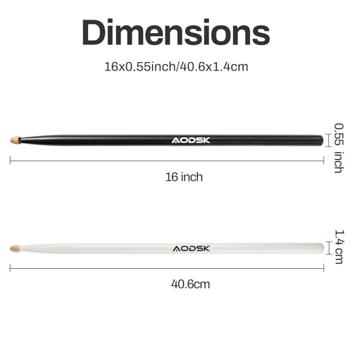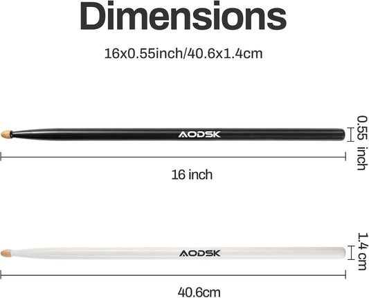 AODSK Drum Sticks,Classic 5A Drumsticks Comfortable Grip Hickory Wood,Black Wood Drumsticks,2 Pairs
