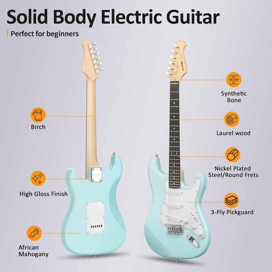 AODSK Electric Guitar with Amp Beginner Kit 39 Inch Solid Body Full Size,All Accessories,Digital Tuner,Six Strings,Four Picks,Tremolo Bar,Strap,Gig Bag,Starter kit