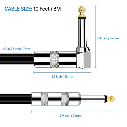 AODSK Guitar Cable 10 ft /20 ft, Electric Instrument Cable Bass Amp Cord for Guitar Bass Amplifier Audio, 1/4" Right Angle to Straight, Black