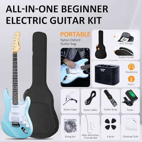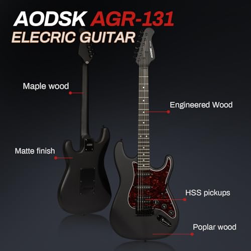 AODSK Electric Guitar,39" Beginner Electric Guitar Kit,Full Size Electric Guitar Starter Kit with Amp, Case and Accessories Pack Beginner Starter Package