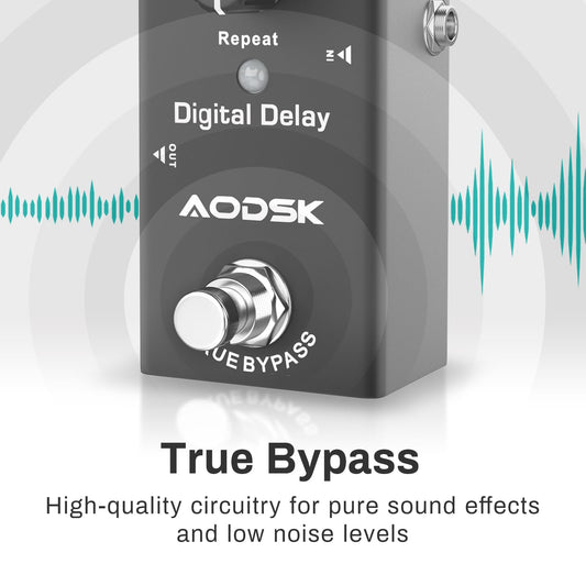 AODSK Electric Guitar Effect Pedal, Digital Delay, Time, Level, Repeat,True Bypass, 9V DC