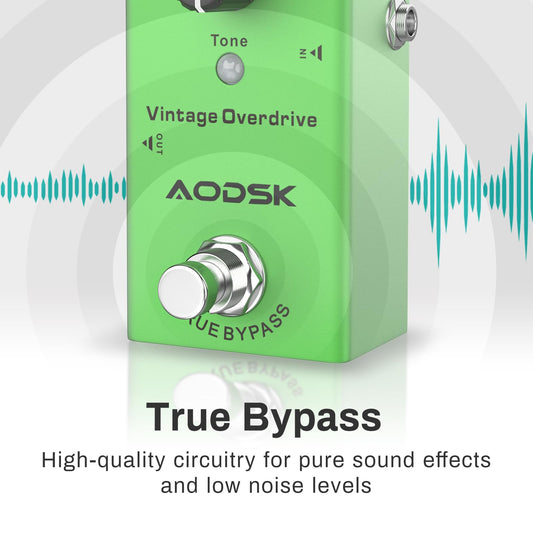 AODSK Electric Guitar Effect Pedal, Vintage Overdrive, Tone, Drive, Volume Adjustable, True Bypass, 9V DC