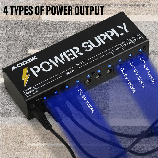 AODSK Guitar Effect Pedal Power Supply,9V/12V/18V DC Output,10 Isolated DC Output(AH-05)