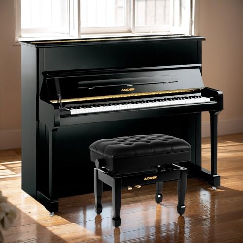 AODSK Piano Bench Adjustable with Storage,Heavy Wooden Piano Stool Padded Piano Seat Cushion,Black Keyboard Bench,15.75" D x 23.62" W x 18.5" H,Height Range 18.5''to 22.83''