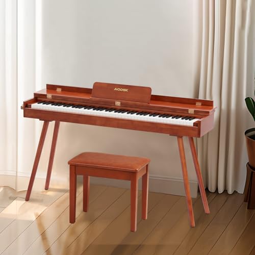 AODSK Wooden Digital Piano 88 Key Full Size Weighted Keyboard,All Solid Wood Body Piano for Beginners,with Sheet Music Stand,Triple Pedal,Power Adapter,Supports USB-MIDI Connecting(UB-99G)