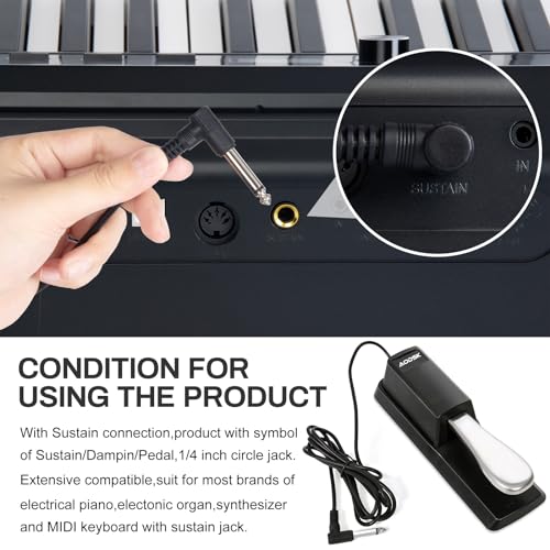 Aodsk Piano Sustain Pedal,Keyboard Sustain Pedal for Digital Piano With Polarity Switch and Anti-Slip Rubber Bottom For MIDI Keyboards,Digital Pianos,1/4'' (6.35mm) Input Plug