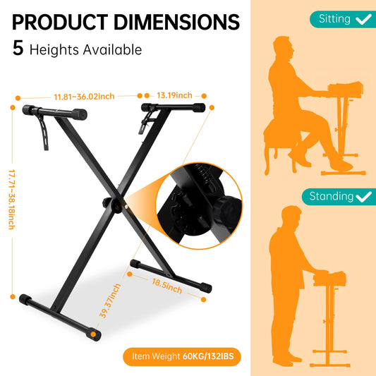 AODSK Single-X Keyboard Stand Adjustable Width & Height,Piano Stand with Locking Straps & Quick Release Mechanism (Keyboard Stand)