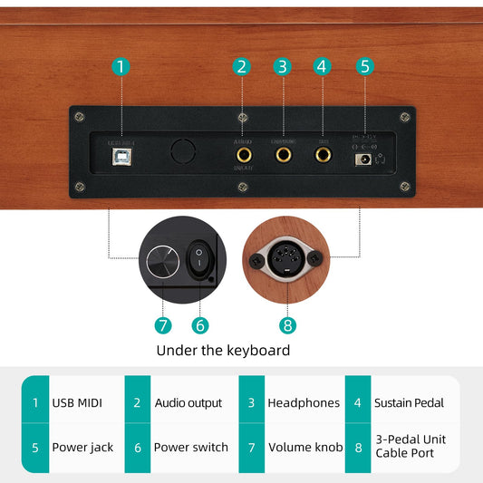 AODSK 88 Keys Digital Piano,Full-size semi weighted key,128 Tones & Rhythms, MIDI/USB Connectivity, Headphone Jack