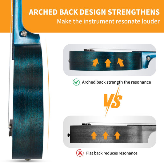 AODSK Concert Blue Ukulele for Beginner 23 Inch Uke with Gig Bag Strap Nylon String 4 Picks Holiday Gift