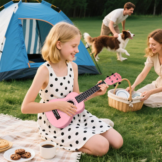 AODSK Soprano Pink Ukulele for Beginner 21 Inch Ukelele with Gig Bag Strap Nylon String 4 Picks Holiday Gift