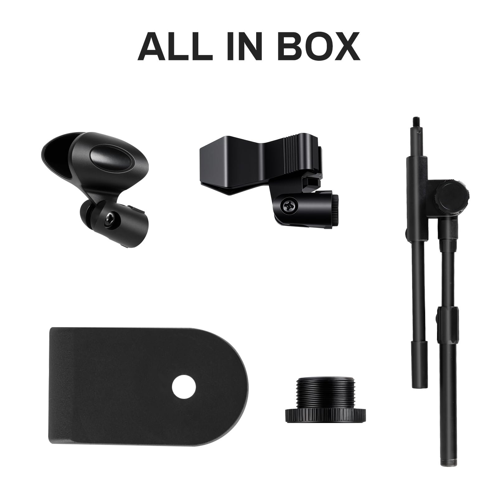 - Compatibility: Includes standard microphone clip and 5/8-inch male to 3/8-inch female screw connector for versatile microphone mounting