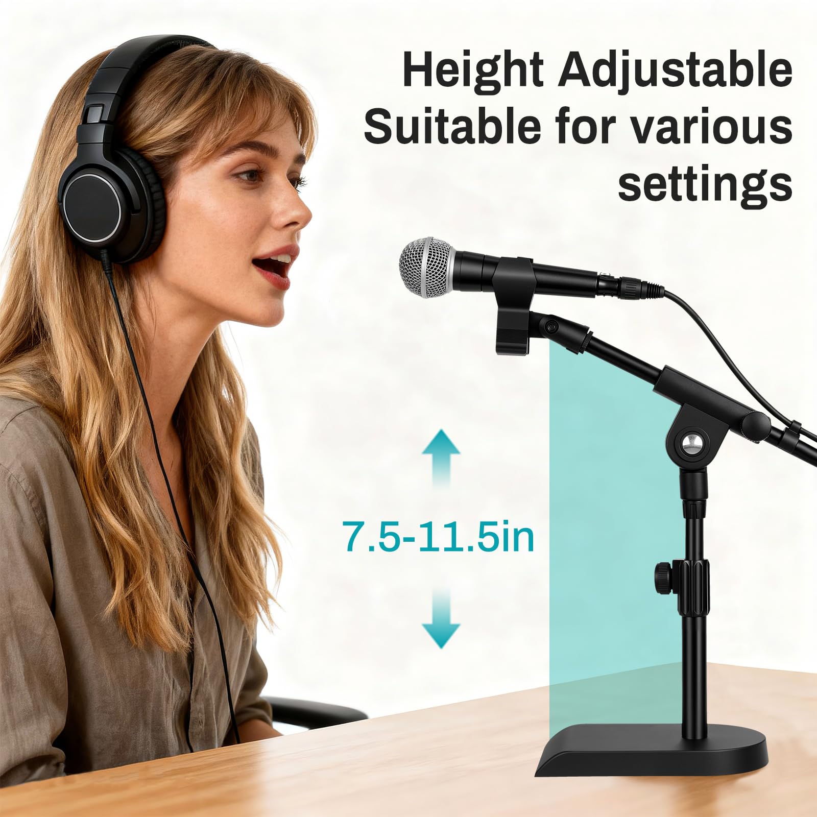 - Base Design: Heavy-duty weighted base provides enhanced stability and prevents tipping during microphone operation