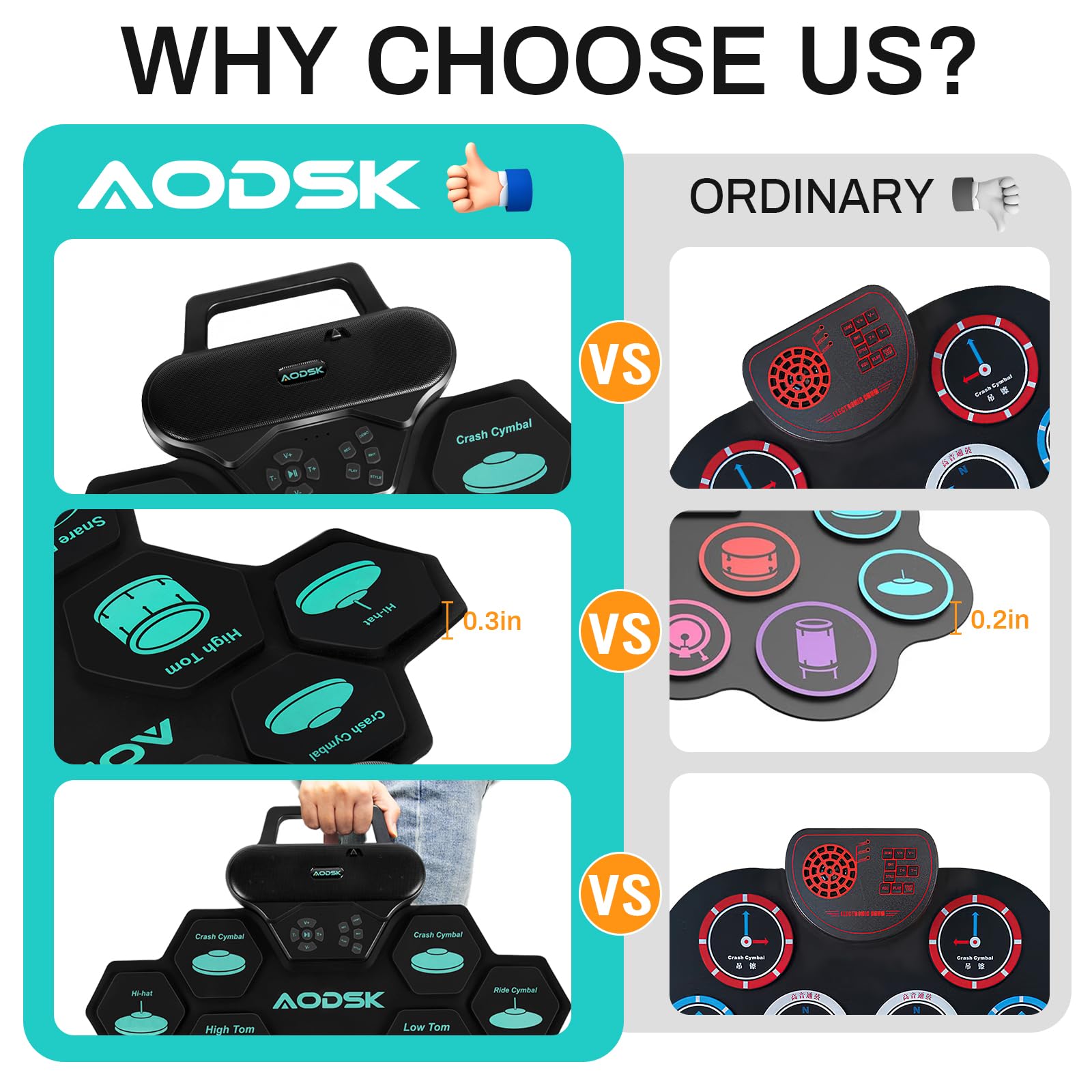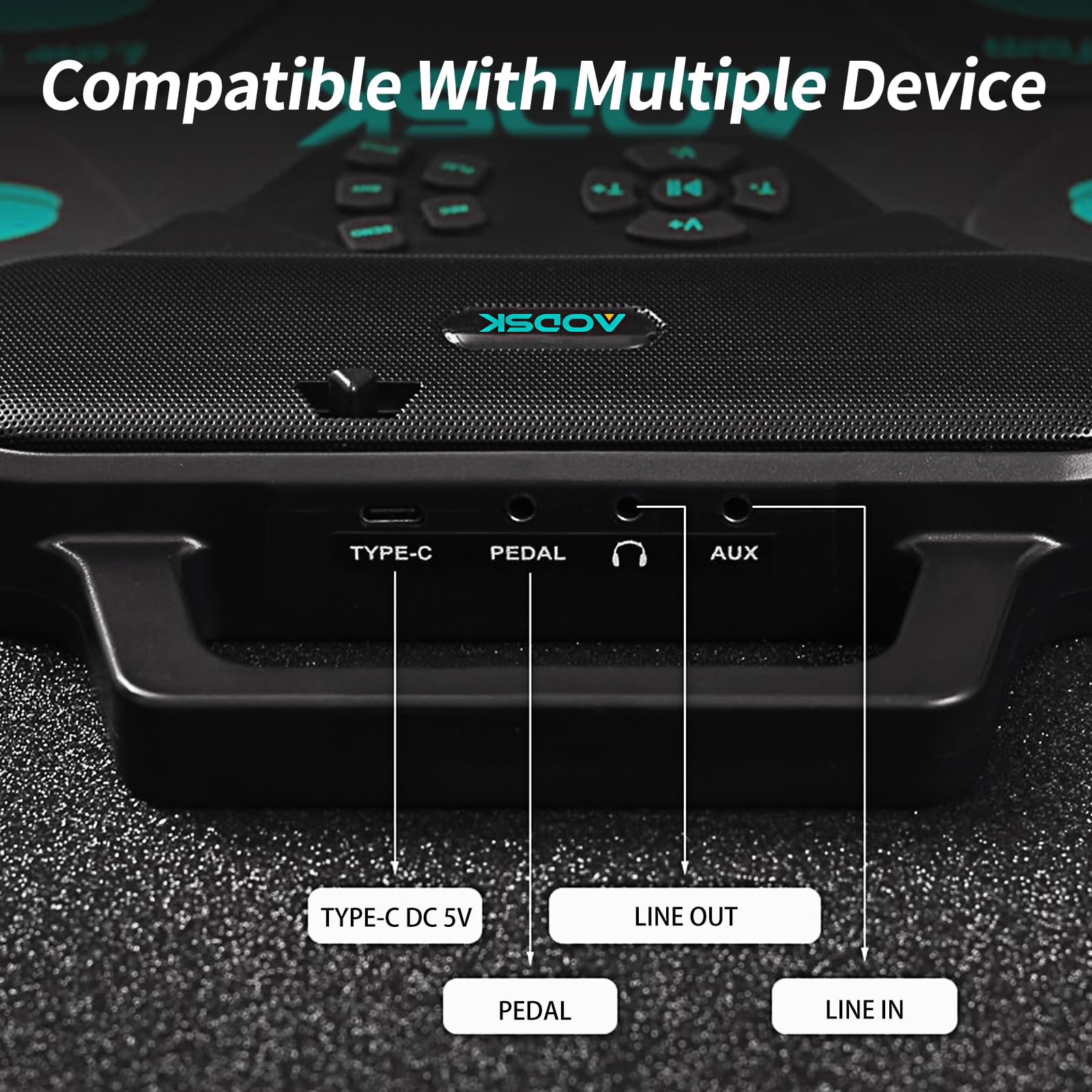 - 【Dynamic Sound Quality】AODSK digital drum pad has high-quality stereo speakers that bring you astonishing bass effects. And this is thanks to the dual speakers used by the AODSK electronic drum set