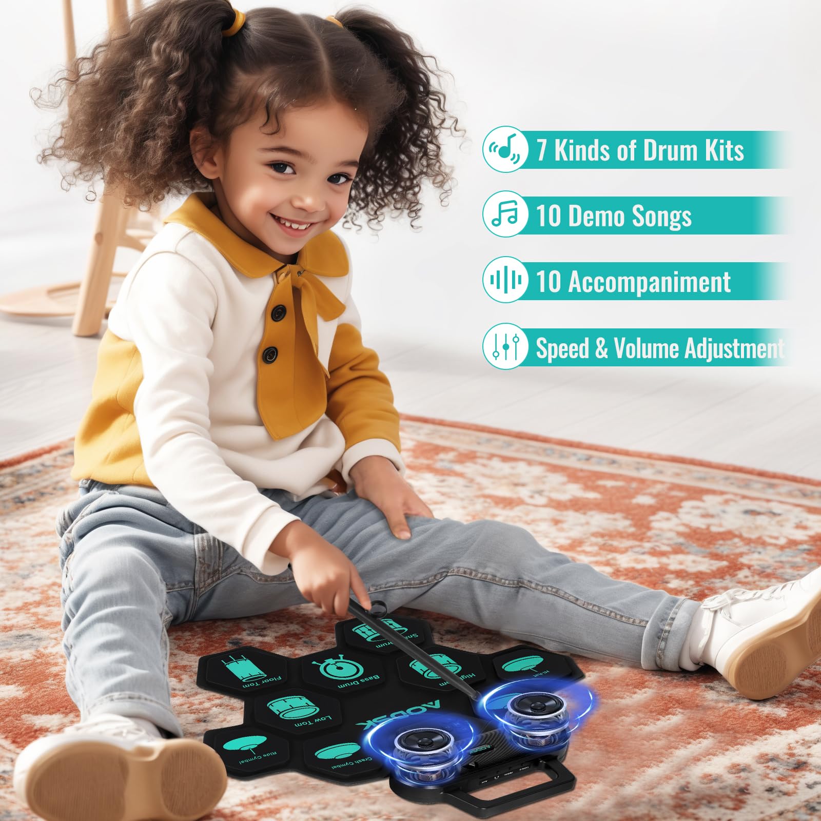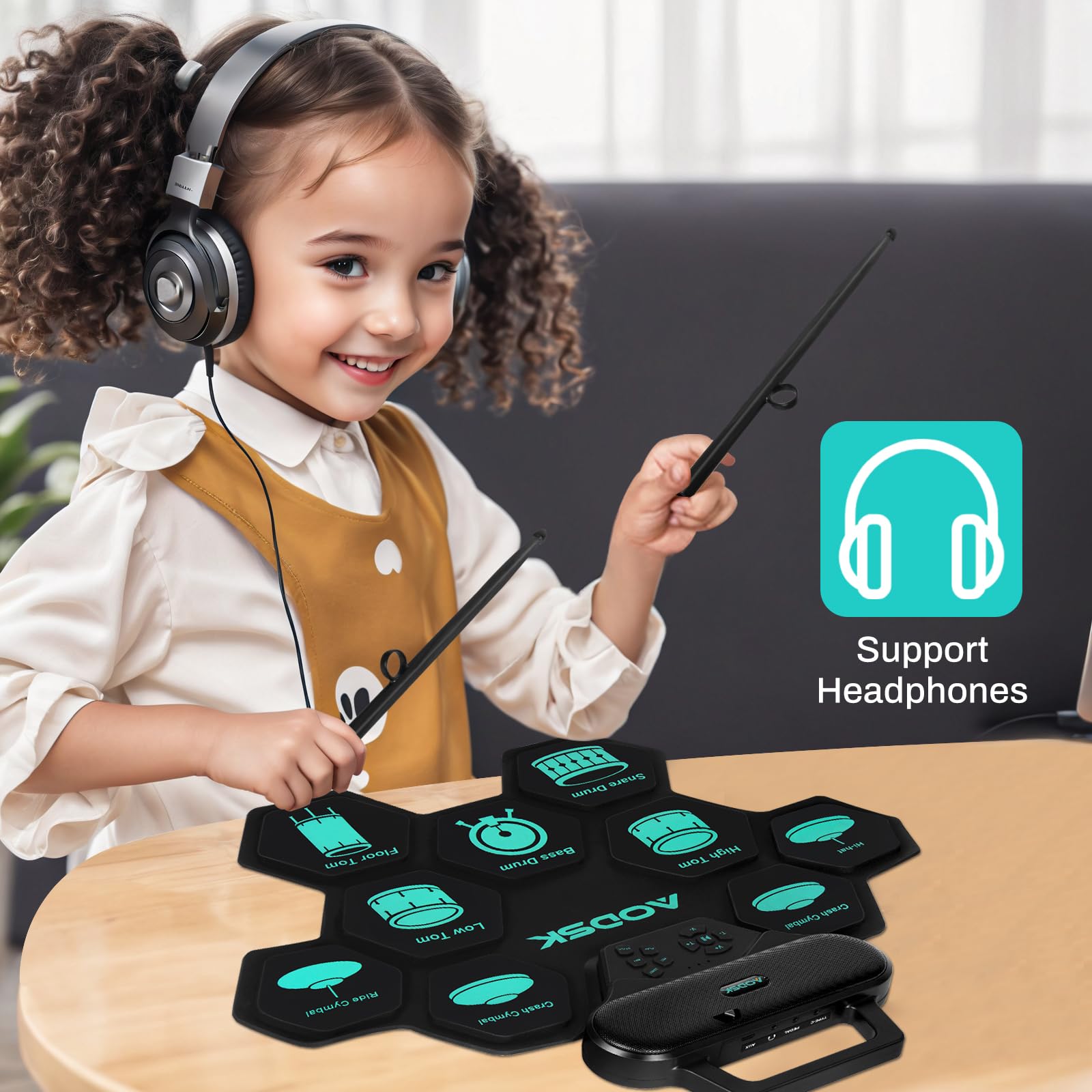 AODSK Electronic Drum Set,9 Practice Pad with Headphone Jack,Roll-up Machine Built-in Speaker Drum Pedals Drum Sticks,Great Holiday Christmas Birthday Gift