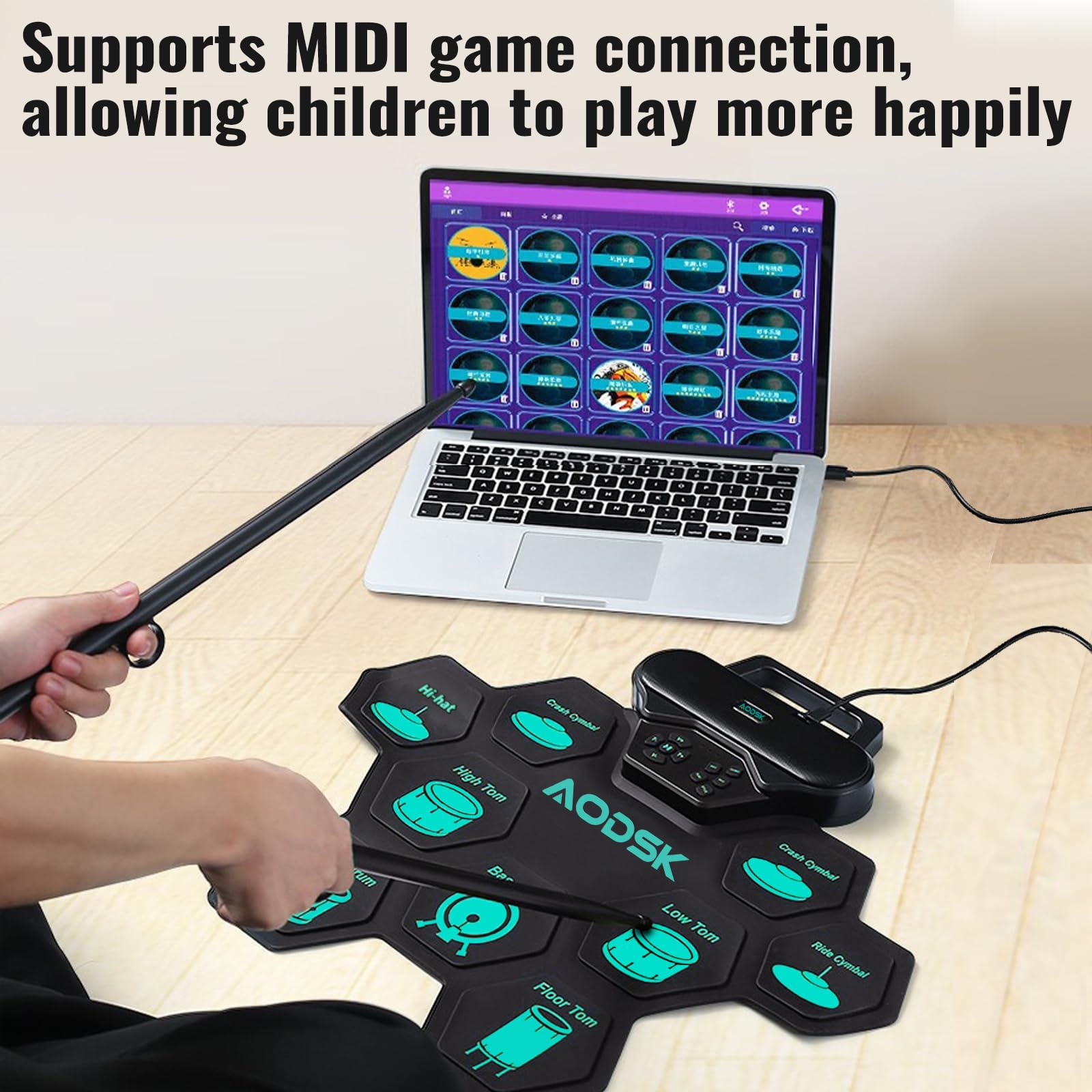- 【Long Battery Life & Easy to Clean】The AODSK Roll-Up drum set guarantees hours of music with up to 8 hours of playtime on a single charge,perfect for extended practice sessions or outdoor performances
