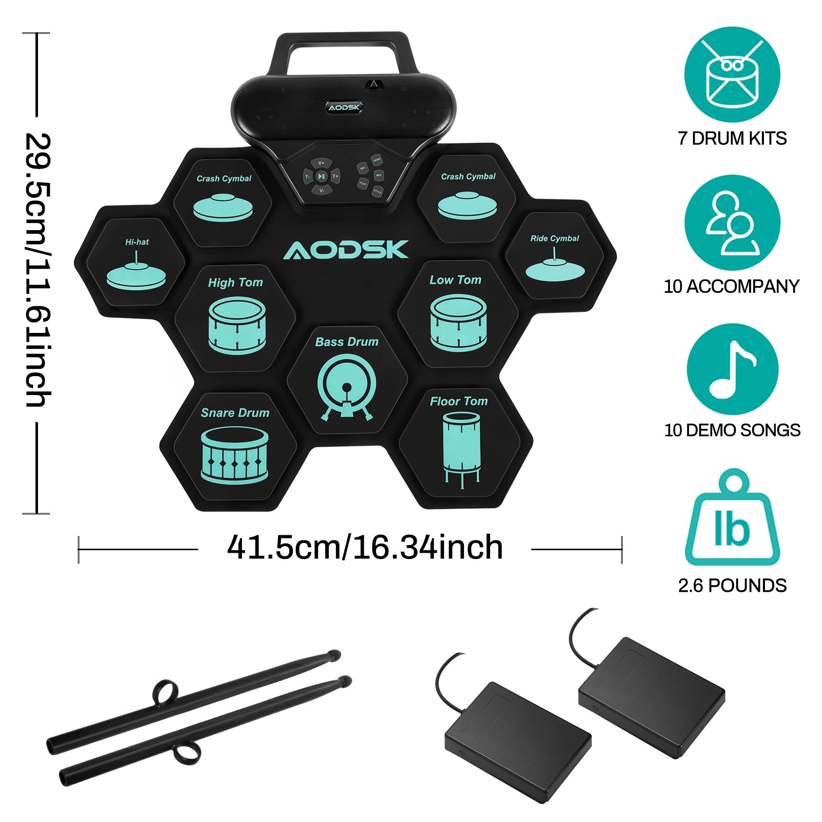 - 【Ultimate Lightweight And Portable】The AODSK electronic drum kit is made from high quality rubber, which not only ensures the quality of the product but also significantly reduces its weight