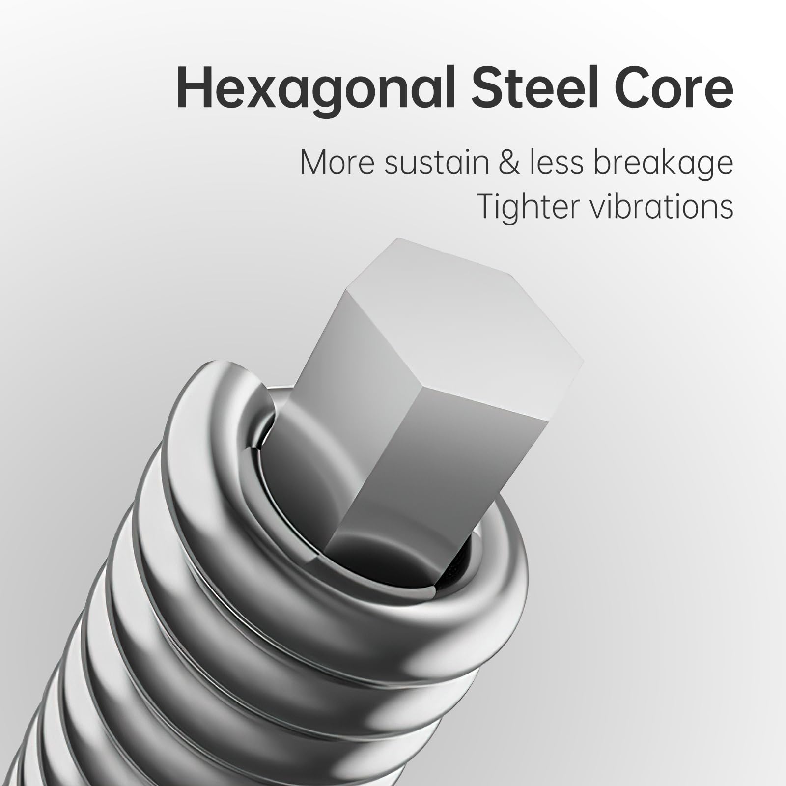 - [Hexagonal Steel Core]:More sustain & less breakage,tighter vibrations.Warm, rich tone with excellent projection and clarity
