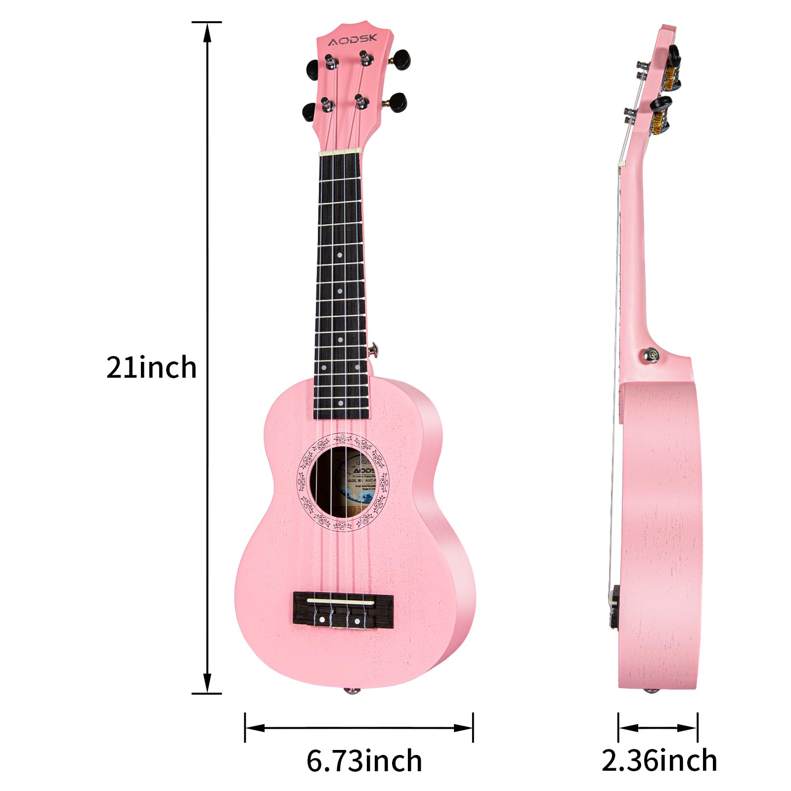 AODSK Soprano Pink Ukulele for Beginner 21 Inch Ukelele with Gig Bag Strap Nylon String 4 Picks Holiday Gift